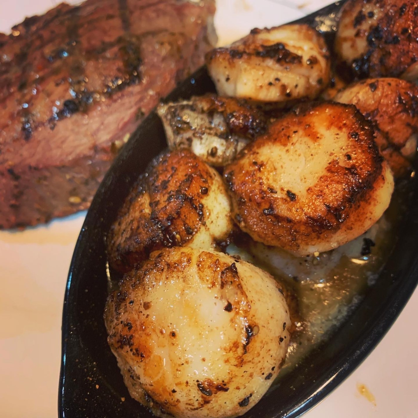 One of the places we missed was our favorite restaurant from our Valentine’s Day trip to Ocean City, Maryland – Harpoon Hannah‘s and their delicious steak and scallops. We will admit, our steak was nowhere near as good as Harpoon Hannah’s, but they also used a nicer cut of meat. Our scallops, however, were to die for! The best part? It was my first time making scallops and they came out phenomenal thanks to Alton Brown’s recipe. NOTE: We added some garlic powder since we’re crazy for our garlic.