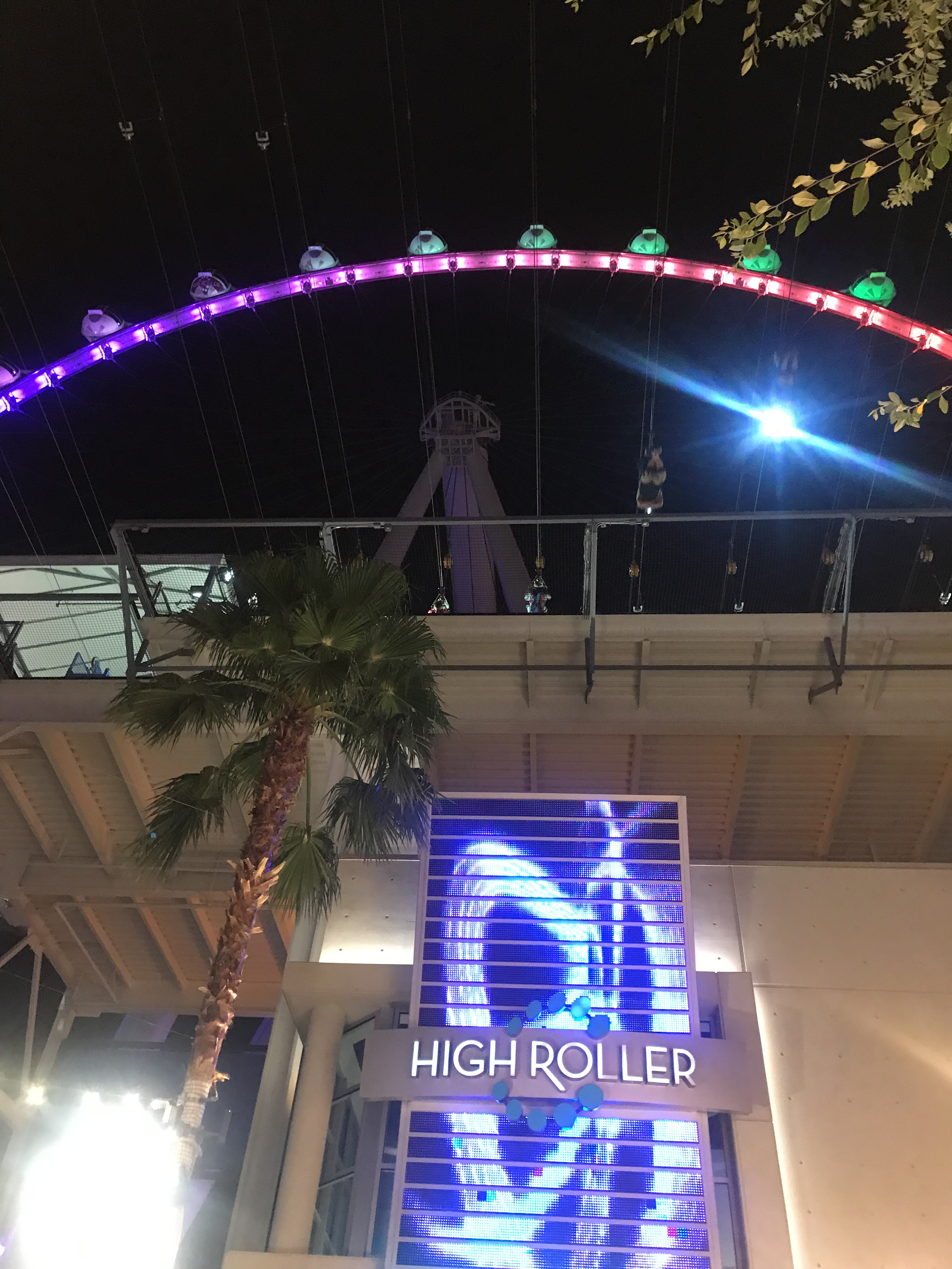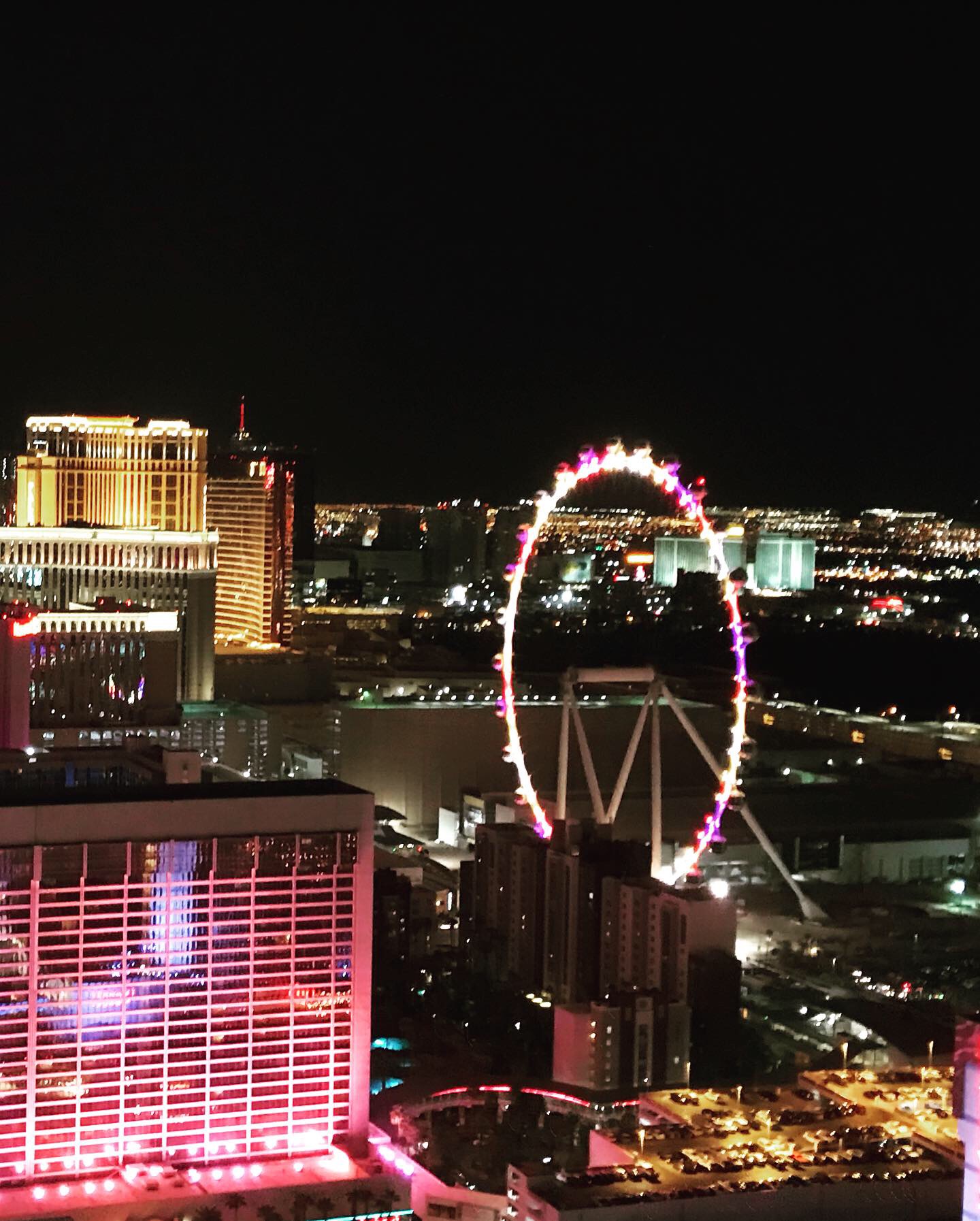 We walked the several blocks to the High Roller and got in the very long line. We discovered that if we had bought our High Roller tickets at the Eiffel Tower Viewing Deck, then the tickets would have only been $20 per person with the open bar (our tickets didn’t include the open bar, but we had our margaritas). The line was ridiculously long, but it was worth the wait since it’s one of those things we feel like you need to do at least once when you visit Vegas. The strip at night is beautiful and the zip lining you can do near the High Roller looks awesome (definitely on the list for next time)! All in all, it was a fun experience and nice to see the strip from the sky, but it was slow and not as thrilling as we had thought it would be. Next time we are in Vegas, we are considering trying it with the bar included and maybe it’ll enhance the experience to a whole new level.