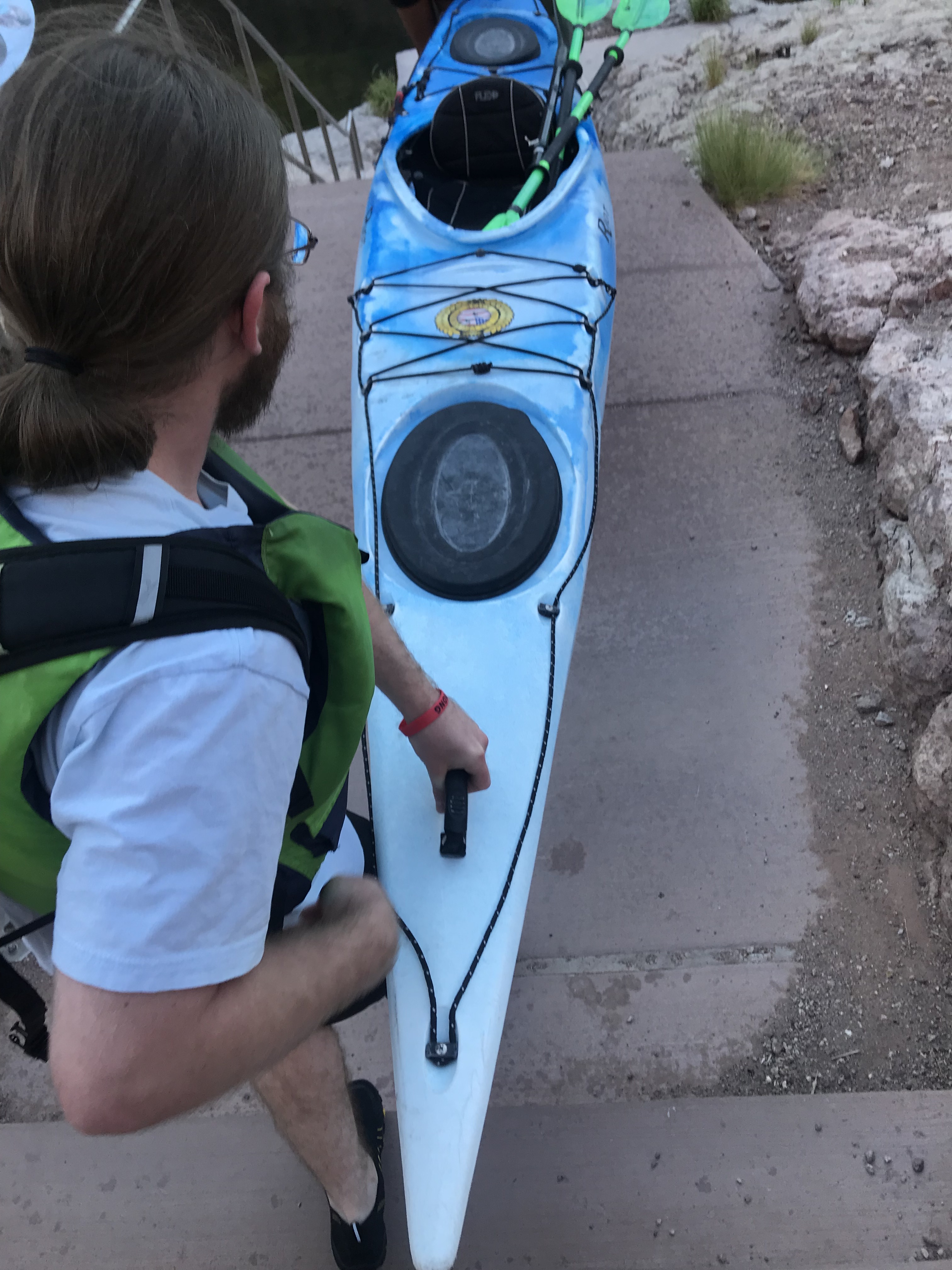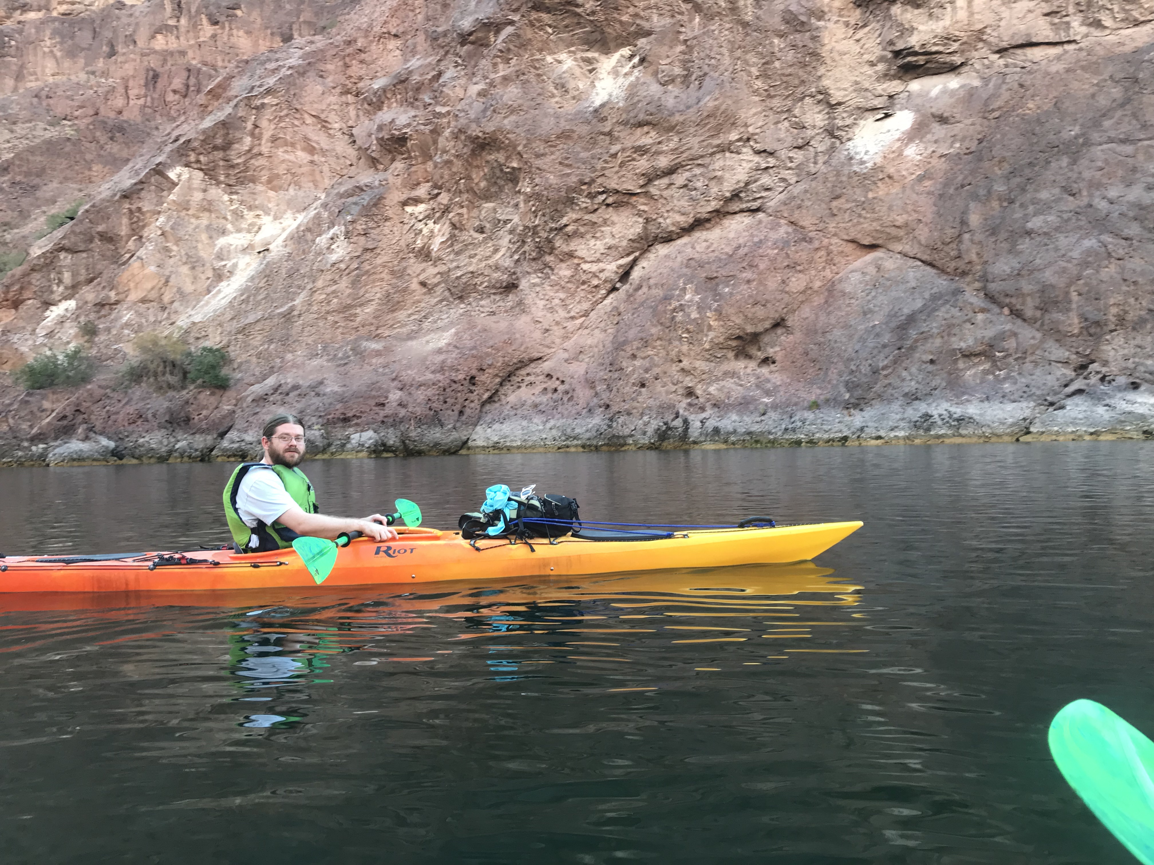 The last stretch of the drive to the Hoover Dam was gorgeous as the dam came into view. Once parked, we were driven down the winding road to the base of the hoover dam where we grabbed our kayaks and were given a quick tutorial on how to maneuver them before embarking on our 14 mile kayaking trip with our tour guide.