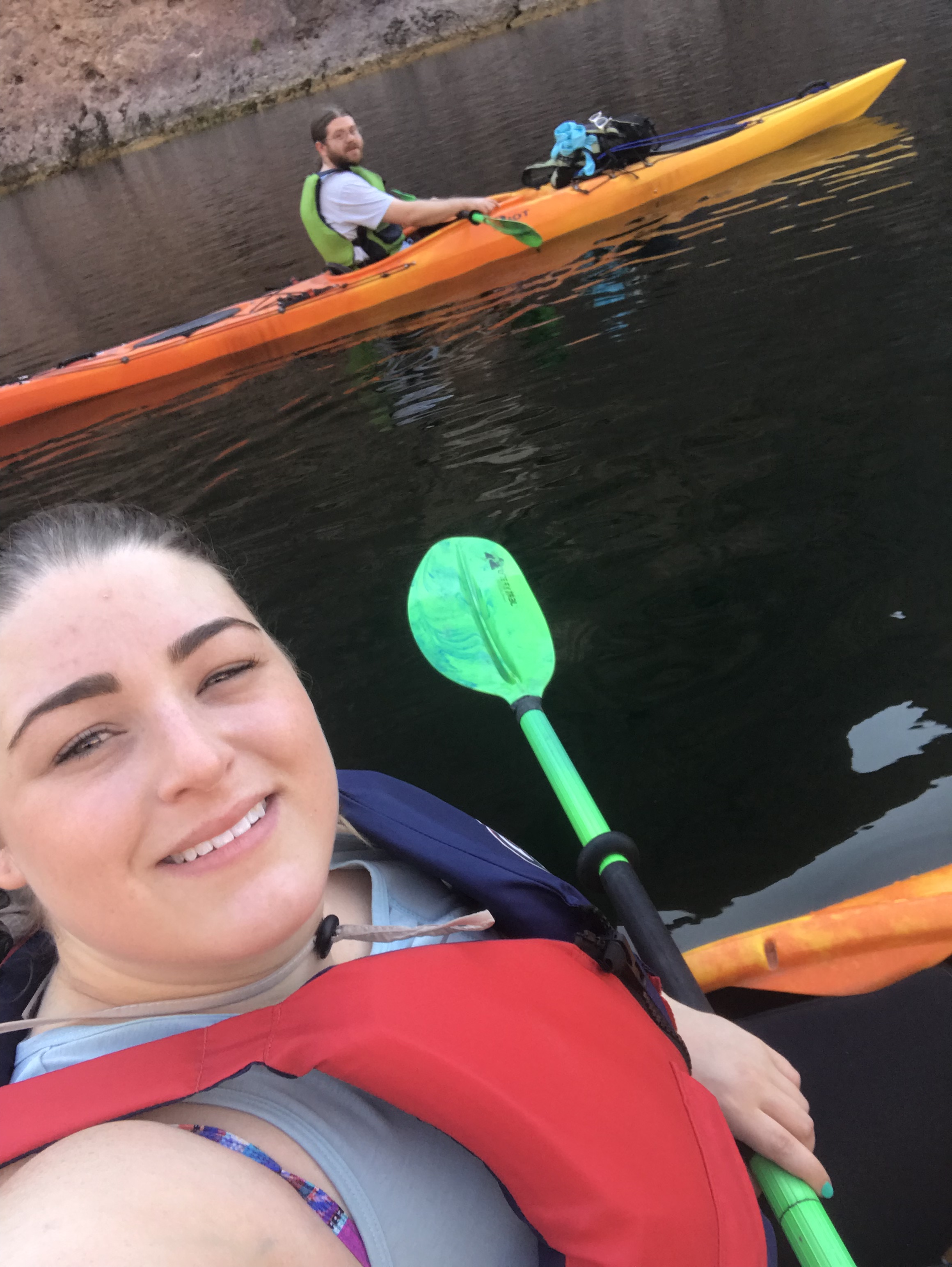 Kayaking has become a new favorite of ours and we can’t wait to go on another kayaking adventure! Our Hoover Dam trip took us to some natural hot springs where each hot spring got hotter and hotter as you climbed higher up. After we stopped for lunch, I definitely managed to flip my kayak when getting back in like the immense grace I am. :p