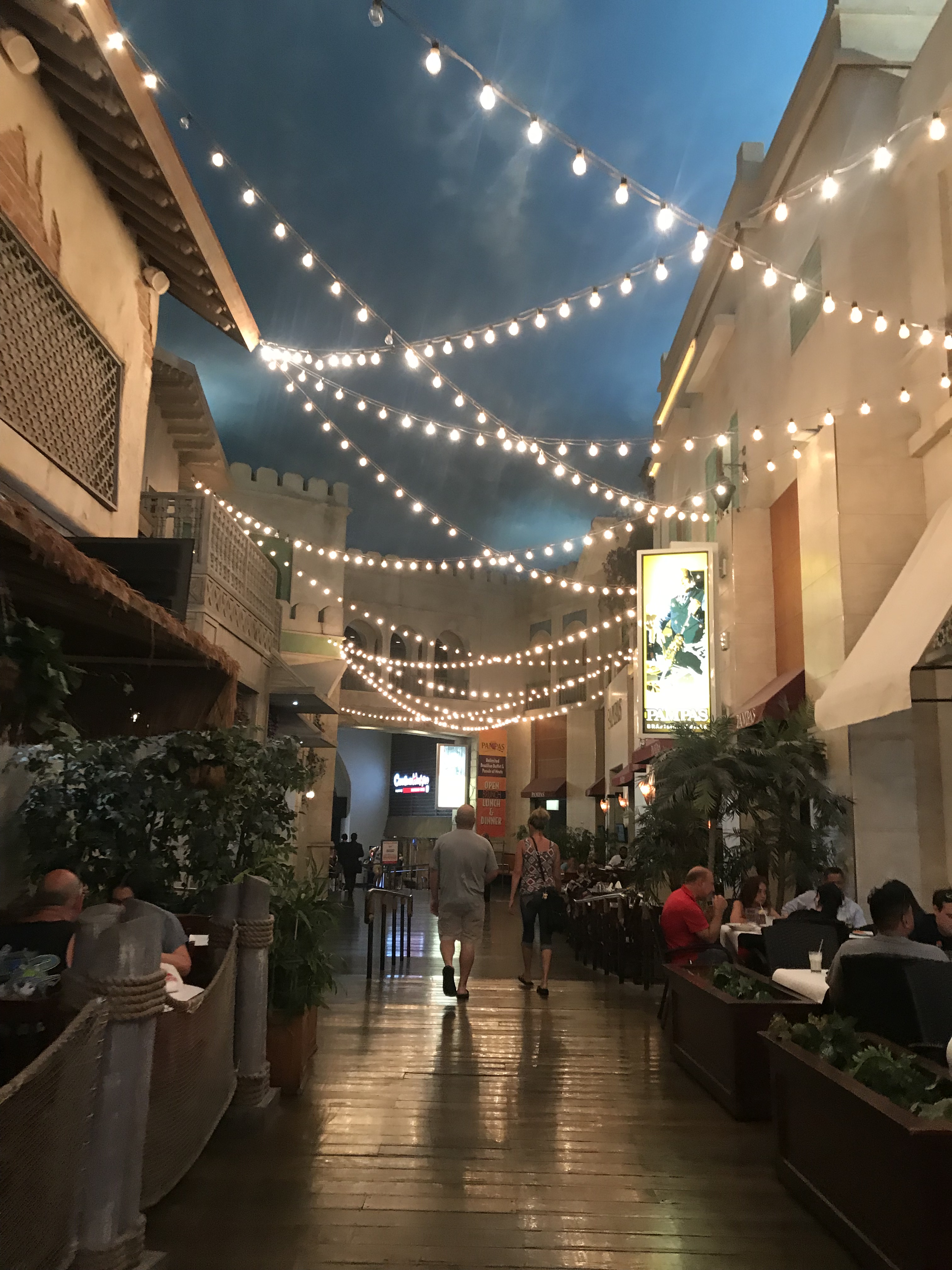 After a brief layover at LAX, we finally landed in Vegas just in time to grab our rental car and make our way to our first stop – Pampas Brazilian Steakhouse! Pampas is located inside of the Miracle Mile Shops, so we had fun wandering through the mall on our way to our lunch. We arrived at about 2:30pm PT and were STARVING since all we had were a handful of snacks and the Stroopwafles on the plane (fun fact, we have now developed a slight addiction to these and they may have been one of our stocking stuffers this past Christmas).